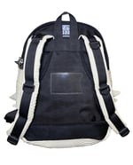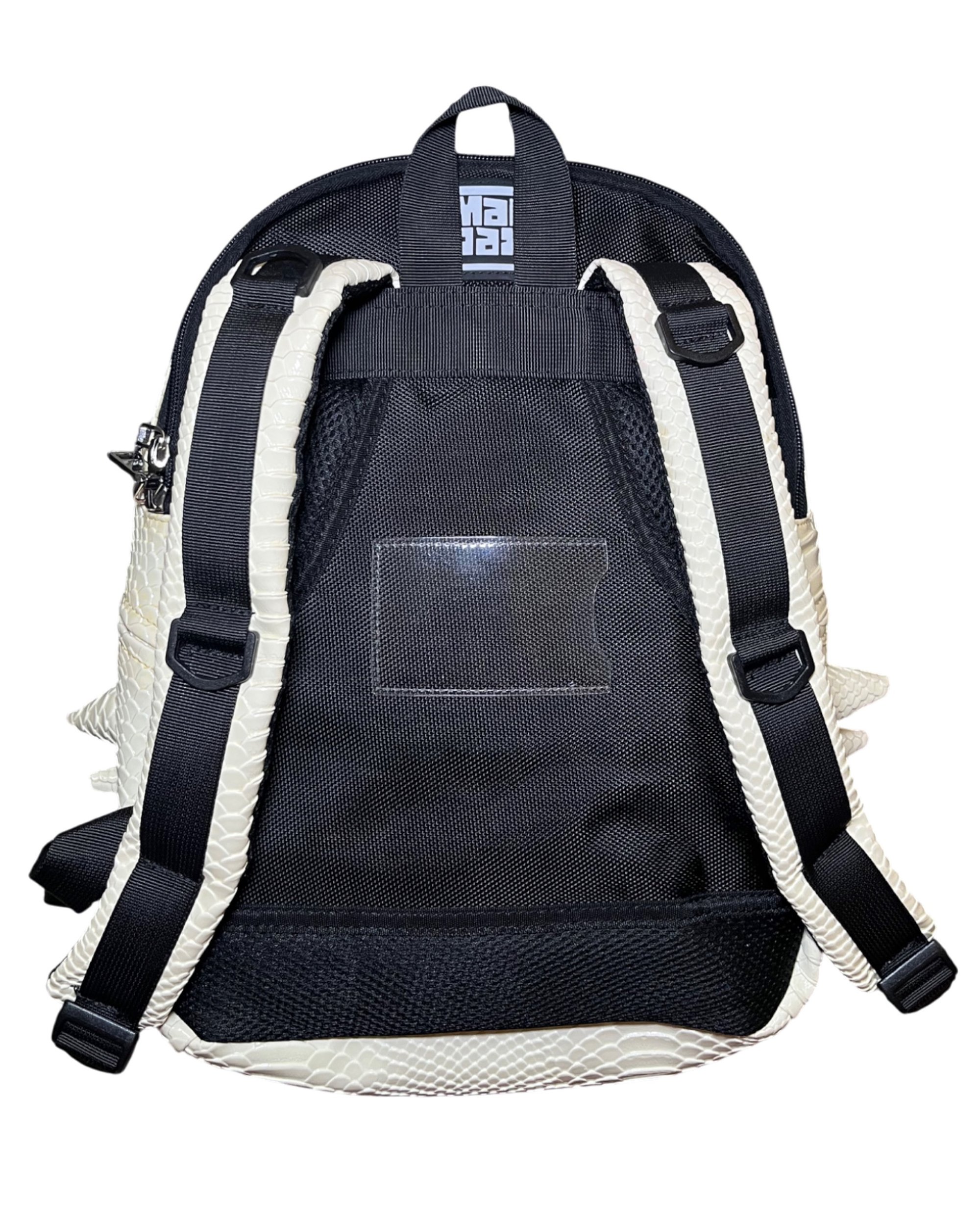 Backpack imitation white snake skin with spikes and several pockets, small size.