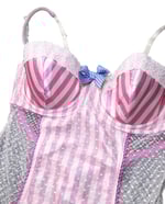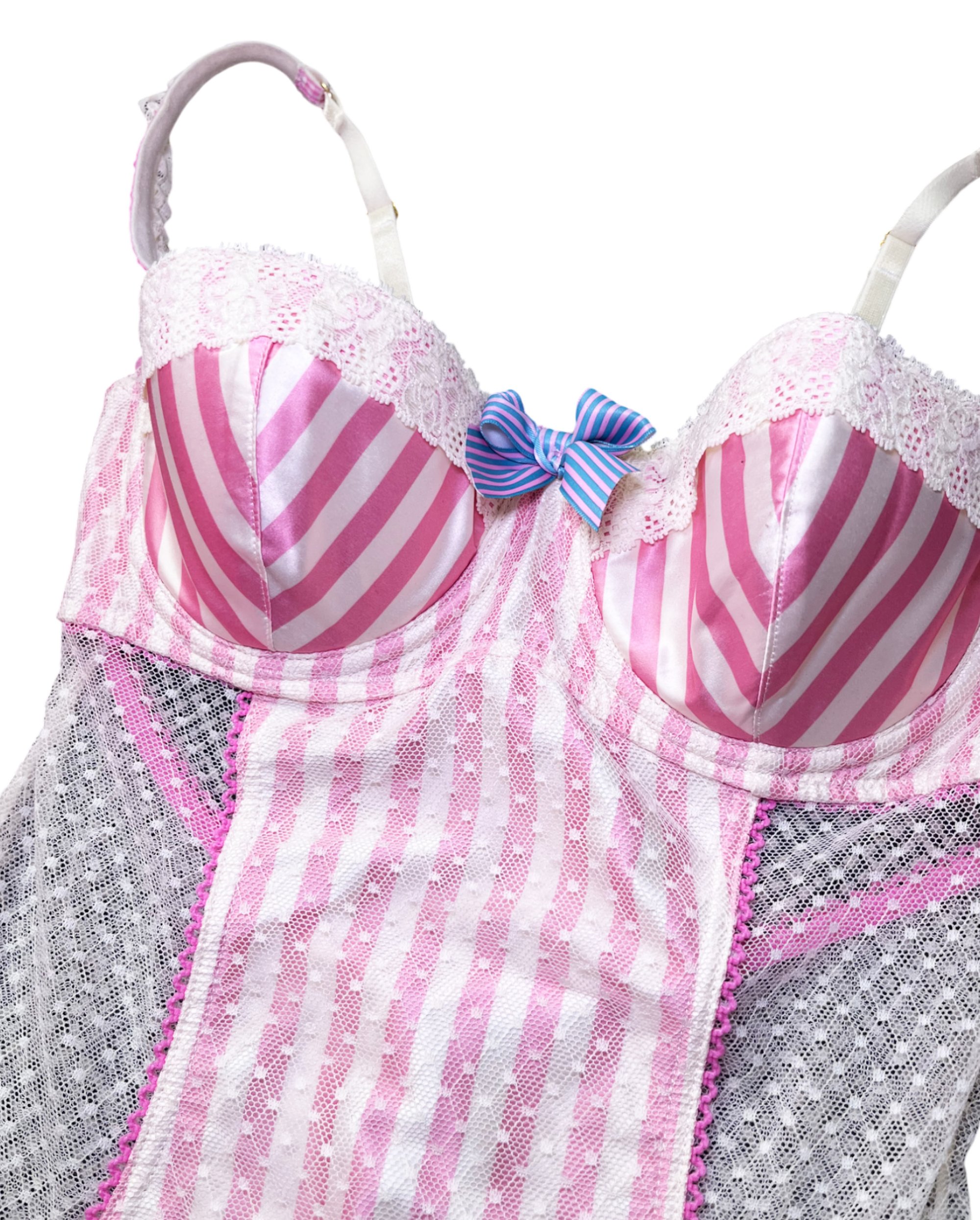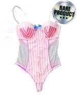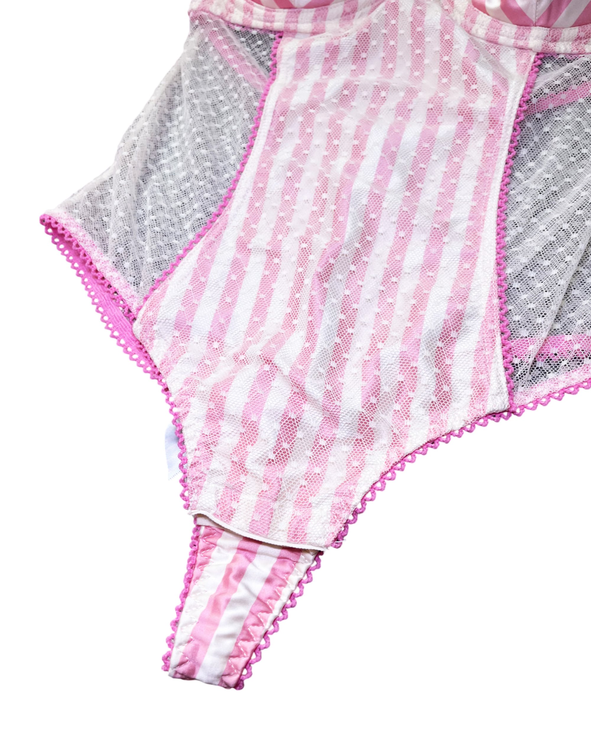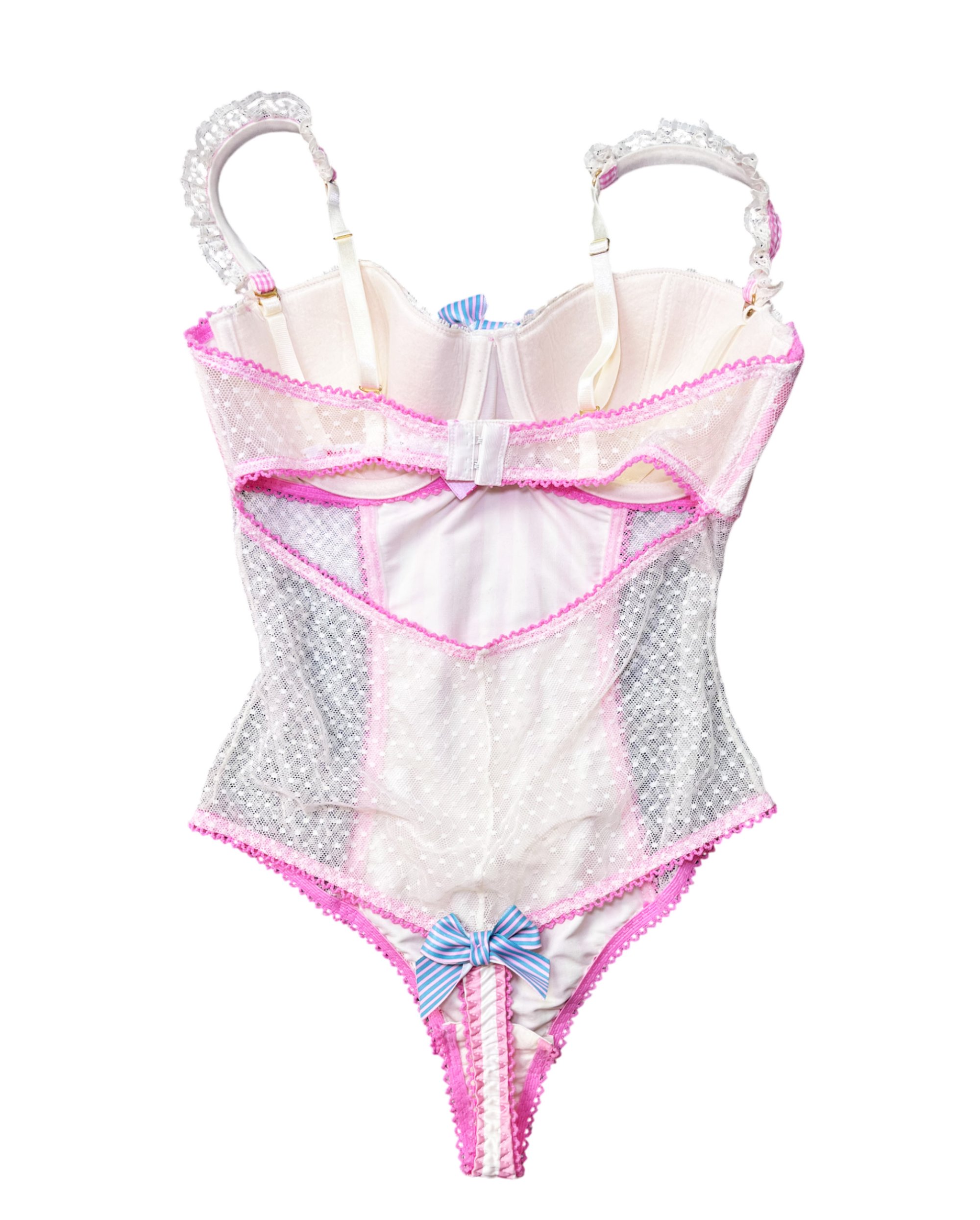 Thong bodysuit with lace and cute details, snap closure and adjustable straps.